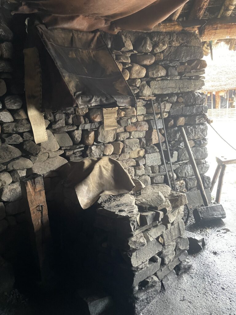 Leaving the indoor display cases of objects, the outdoor reconstructed village held more delights. The forge, although not working, still held the furnace, hammers, tongs and all the fire-working tools. It wasn’t hard to imagine the sounds and smells that would emanate when it is in action.