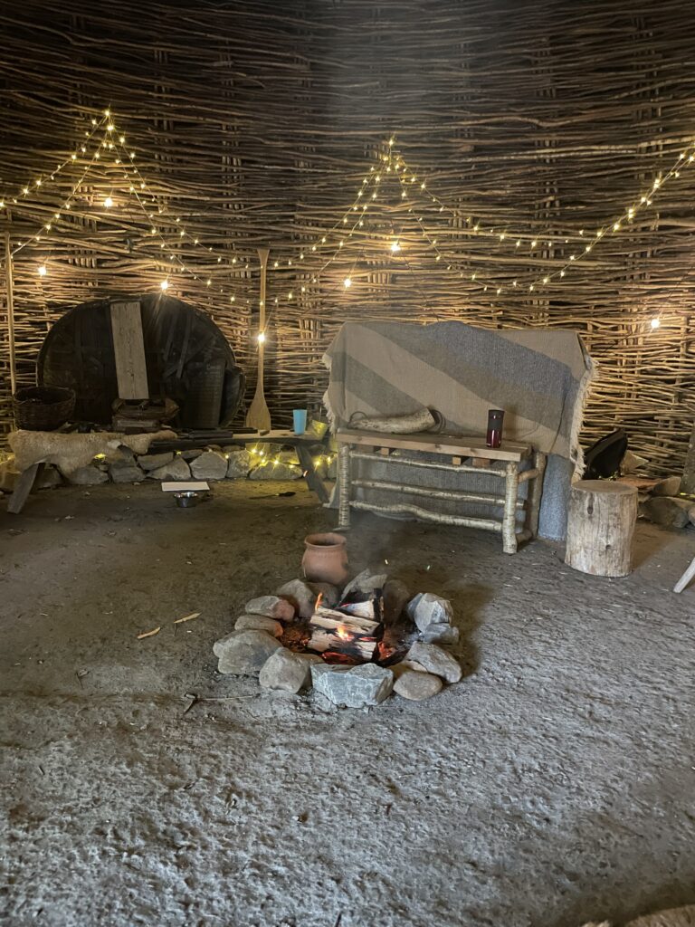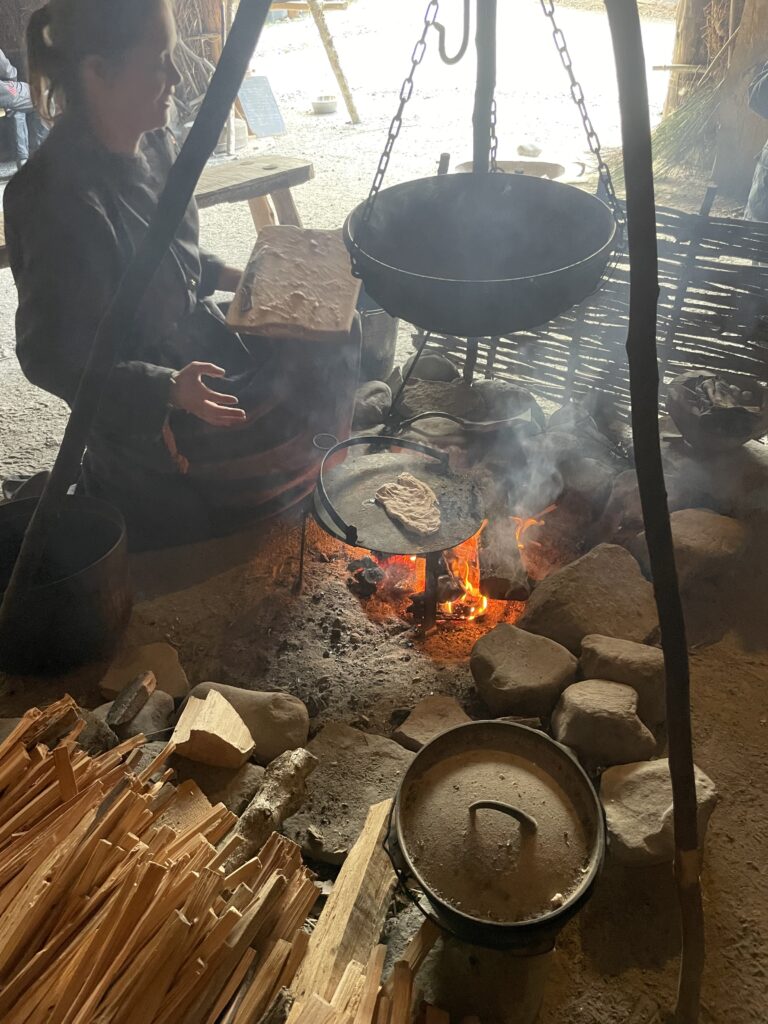 Drawn to a curtain covered doorway we discovered a charming Iron Age puppet show, about to take place. It was wonderfully entertaining for adults and children alike, with lots of fun audience participation. The tale took us on a journey of a young girl to the next village, the creatures she met and the adventures she had. Sitting on logs covered in furs, the flames flickering in the firepit and the smoke billowing into the rafters then filtering through the thatch, gave a real sense of how life would be.